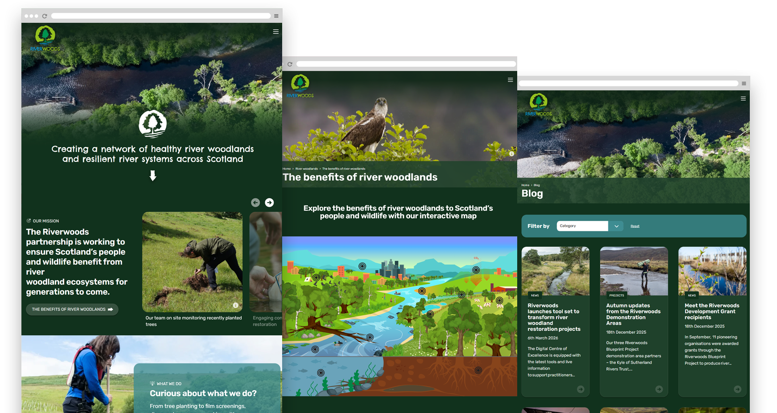 The Riverwoods team wanted to overhaul their existing web presence to be more representative of what they do and engage visitors to the website. Bold use of a distinctive colour palette has helped create something unique and memorable.